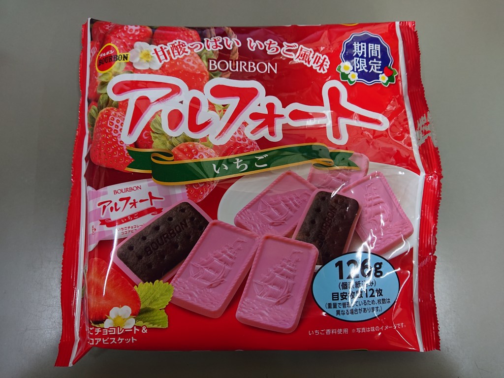 イチゴの季節真っ只中で、イチゴ味の商品が並んでいたので買いました。