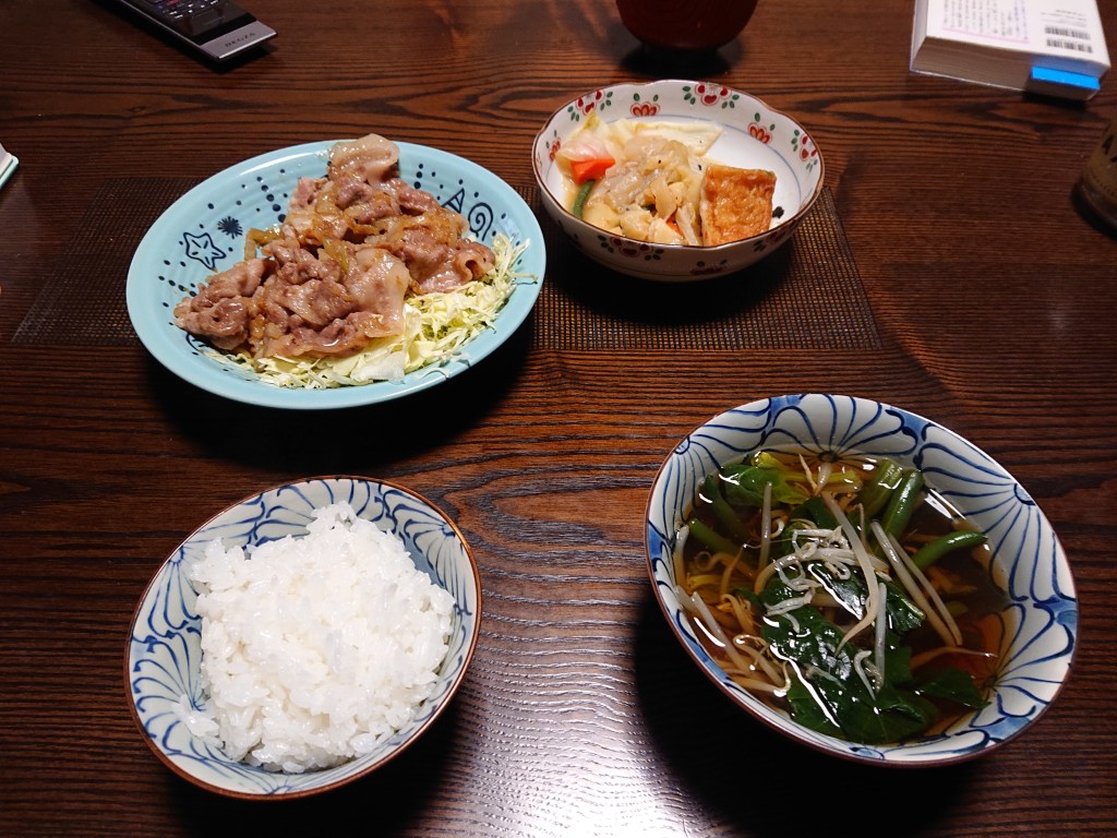 昨日の夕食は、煮物、豚のしょうが焼き、汁物でした。