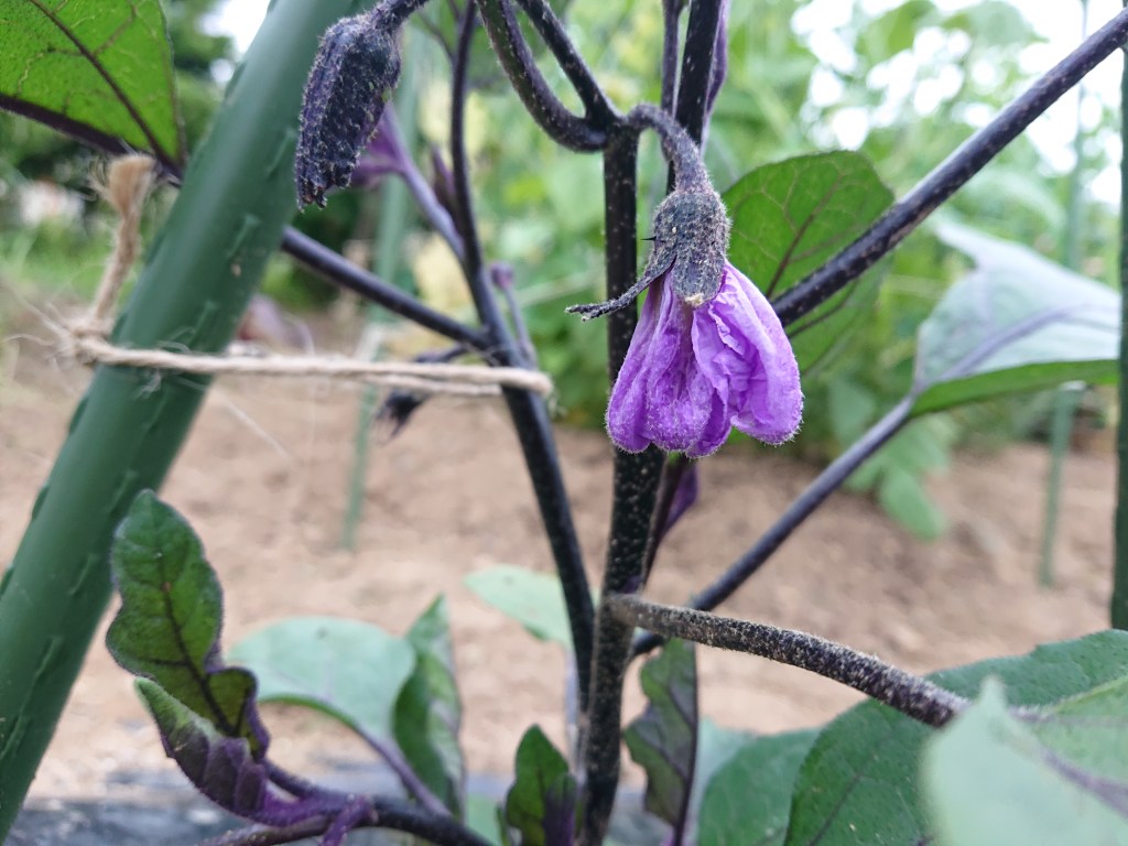 ナスも花が大きくなってきたので、実が成るまでもう少しです。