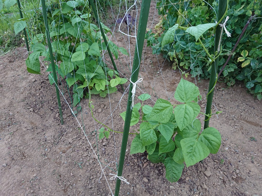 サヤインゲンは、順調にツルを伸ばしています。