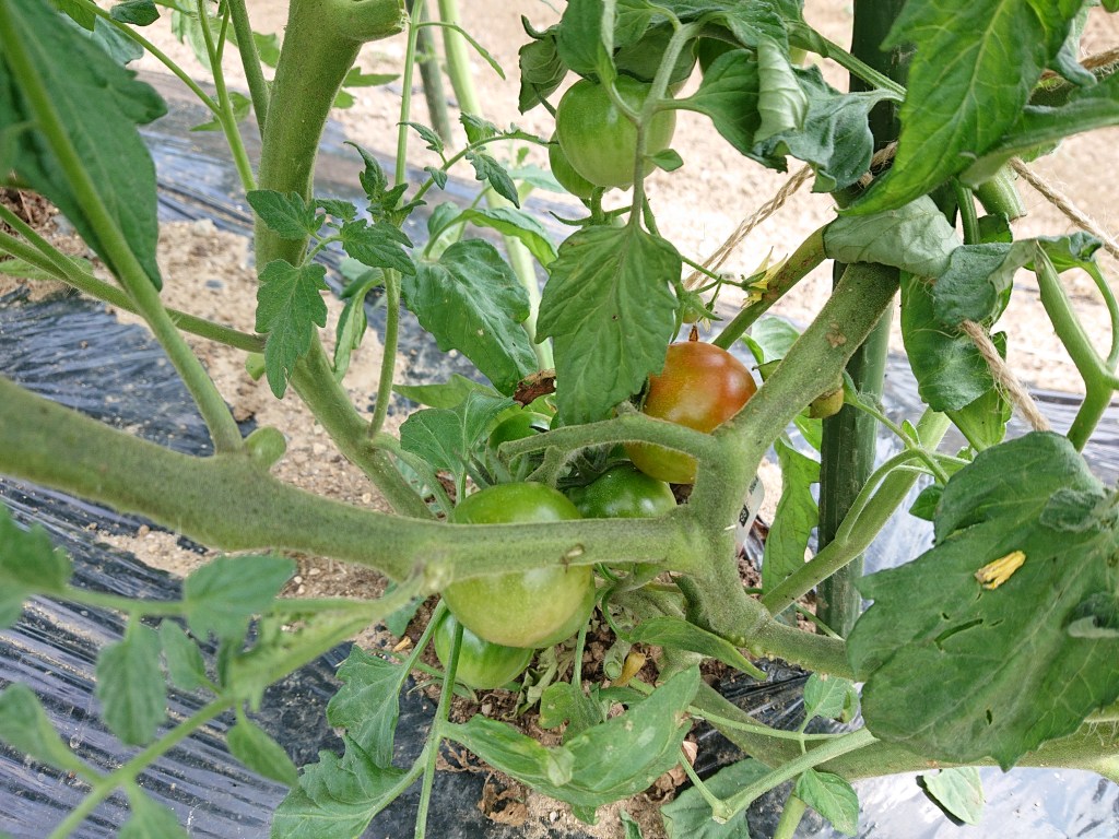 ミニトマトはやっと色づきました。