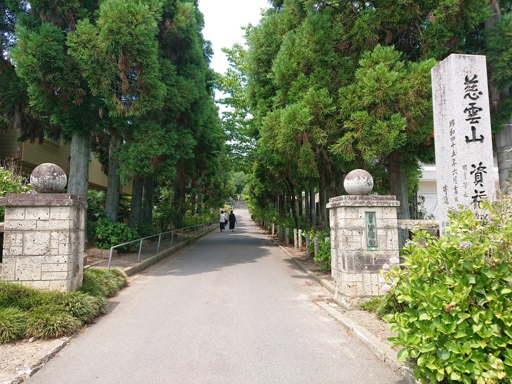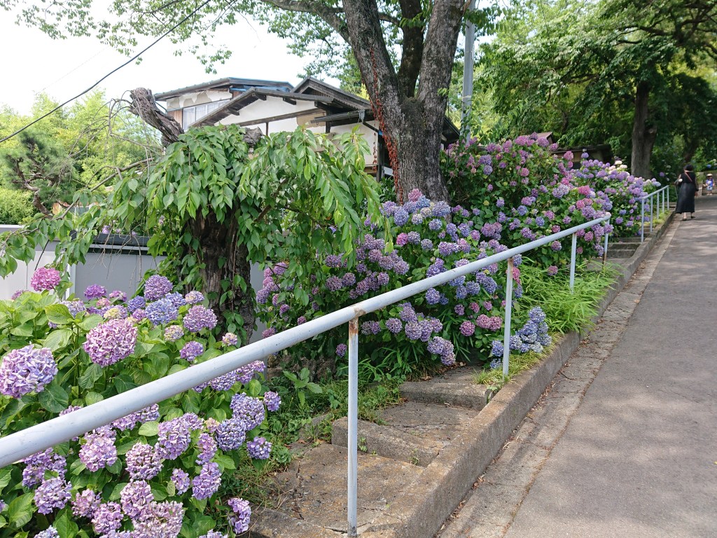 毎年、通り沿いにアジサイが咲き並ぶお寺です。