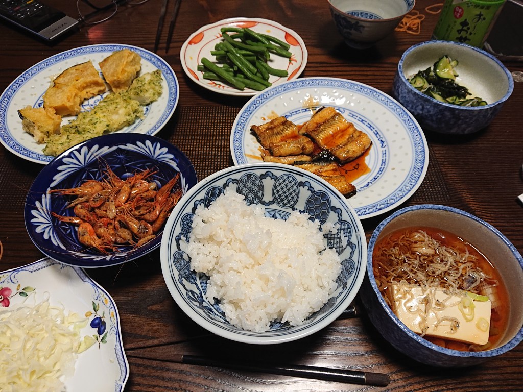 昨日の夕食のメインは、ウナギとエビでした。