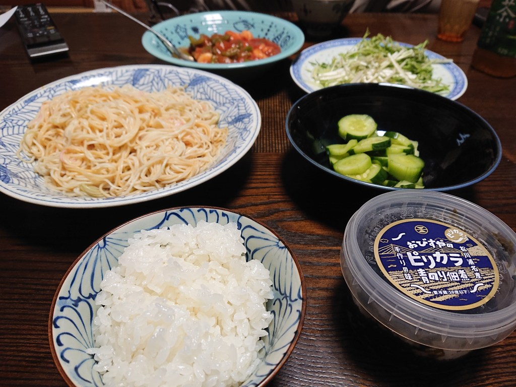 昨日の夕食は、ごはんの他に、残り物のそうめんを食べました。