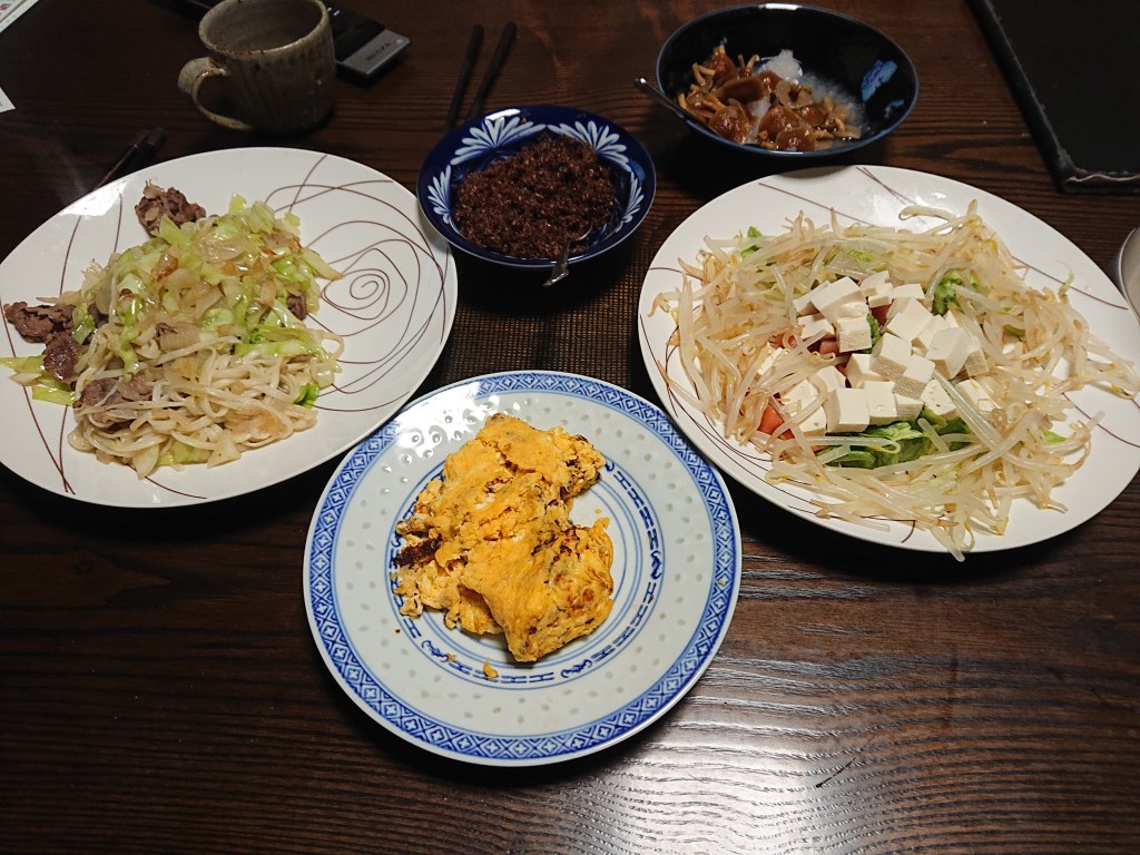 昨日の夕食は、焼きうどん、たまご焼きでした。