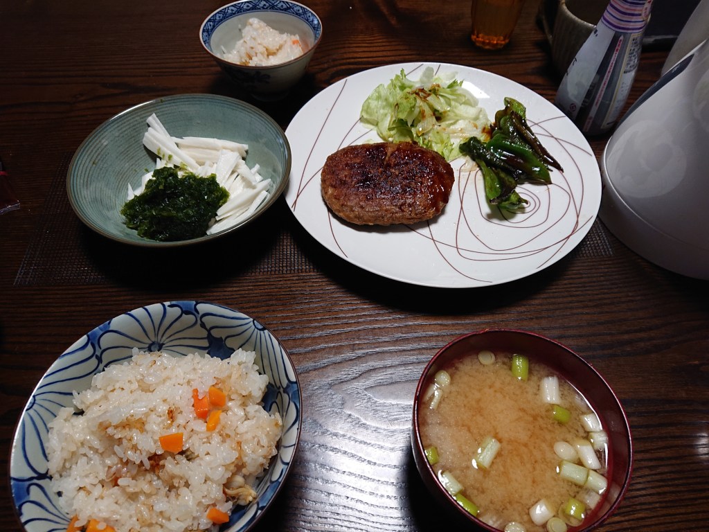 昨日の夕食は、アサリご飯とハンバーグでした。