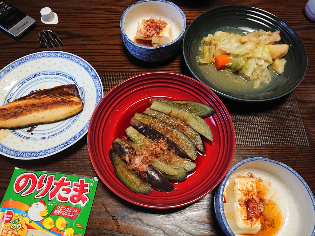 昨日の夕食は、採れたてのナスを使って、ナスの煮浸しでした。
