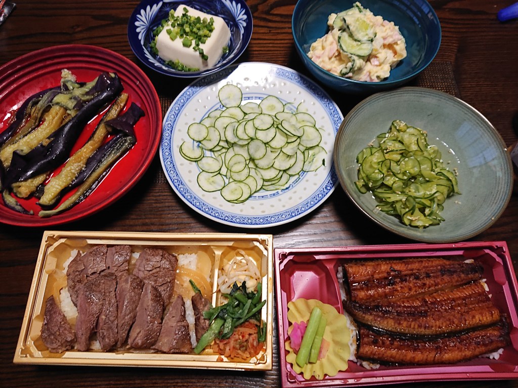 昨日の夕食は、うなぎ弁当、牛肉弁当でした。