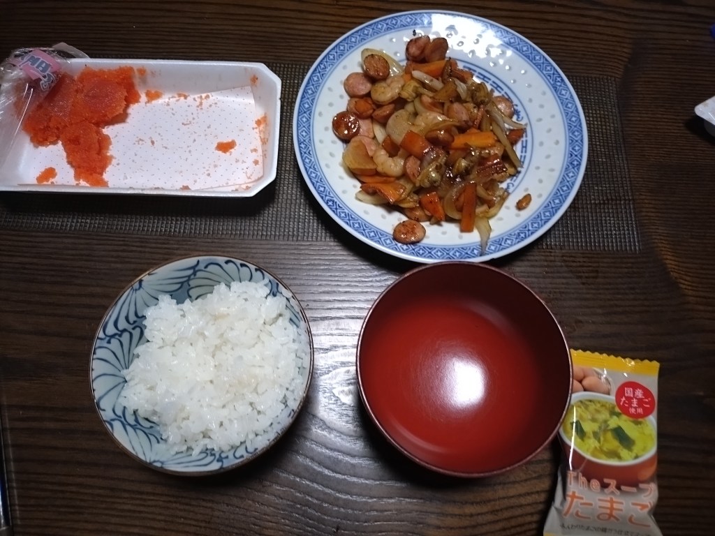 昨日の夕食は、冷凍海鮮炒めでした。