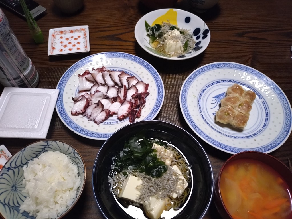 昨日の夕食は、タコの刺身、崎陽軒のシューマイでした。