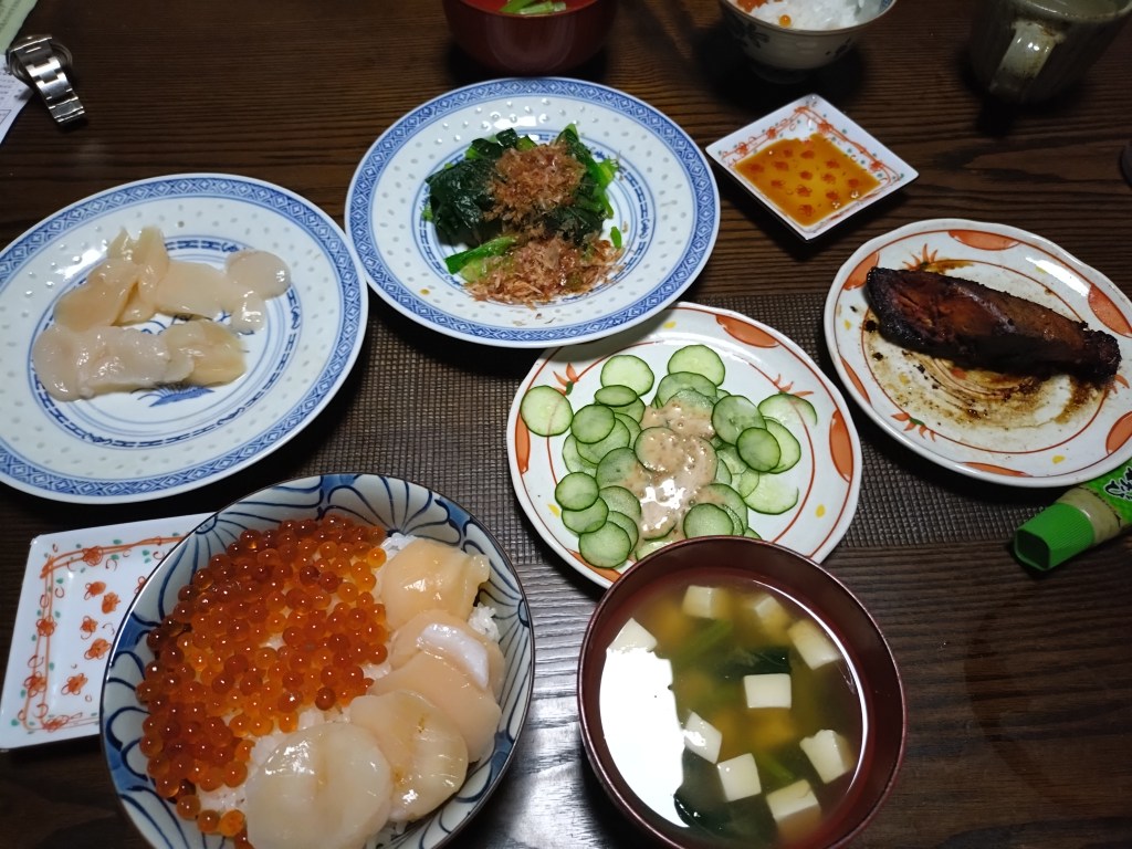 昨日の夕食は、一昨日の残りのイクラ、カツオ。