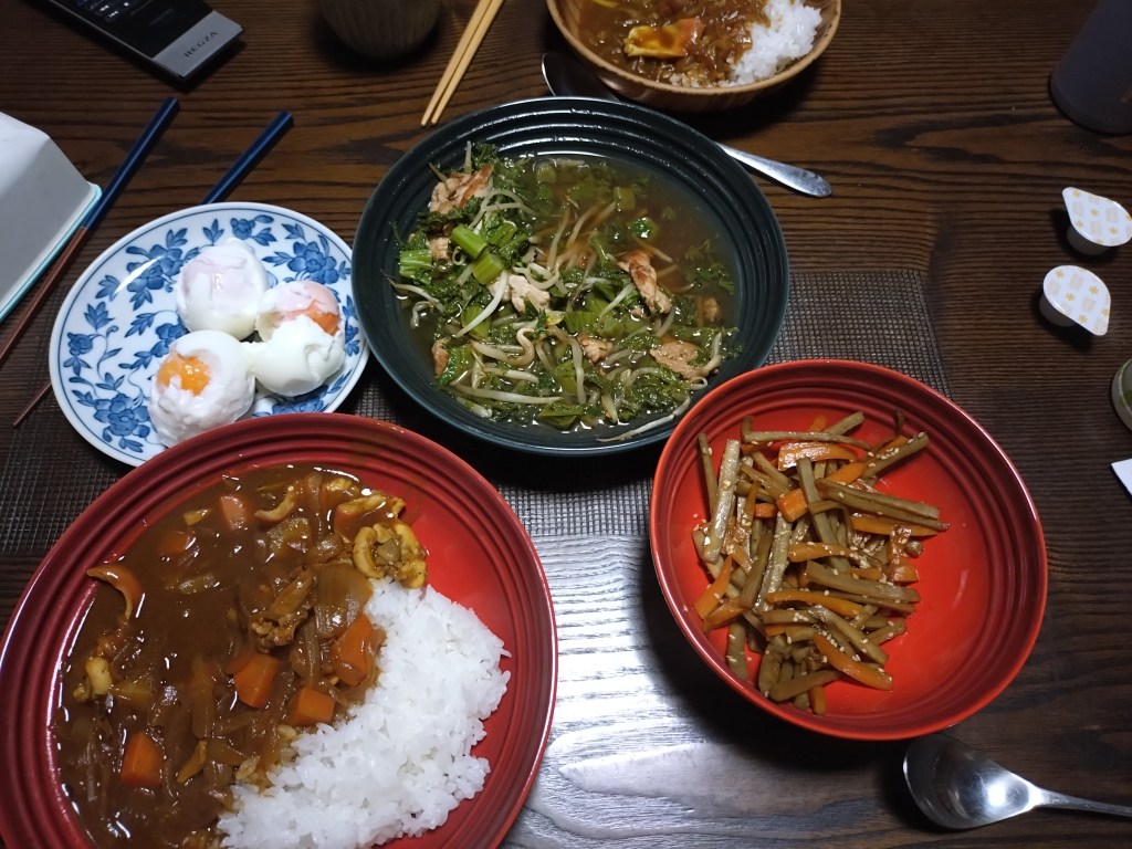 他には、わさび菜炒めの余りもの、きんぴらごぼう。