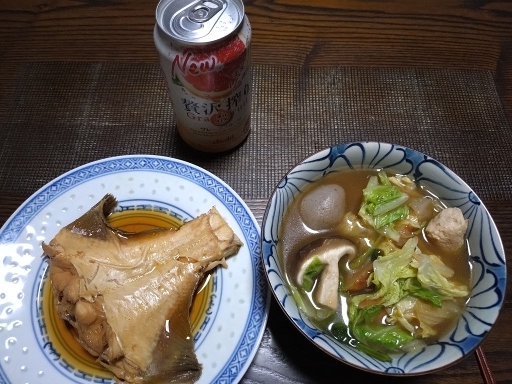 献立は、父が作ったカレイの煮付け、野菜の鍋。