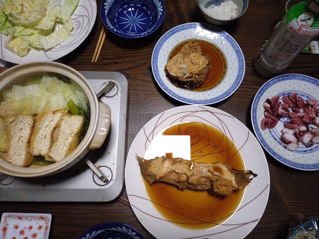 昨日の夕食は、カレイの煮付け、タコの刺身でした。
