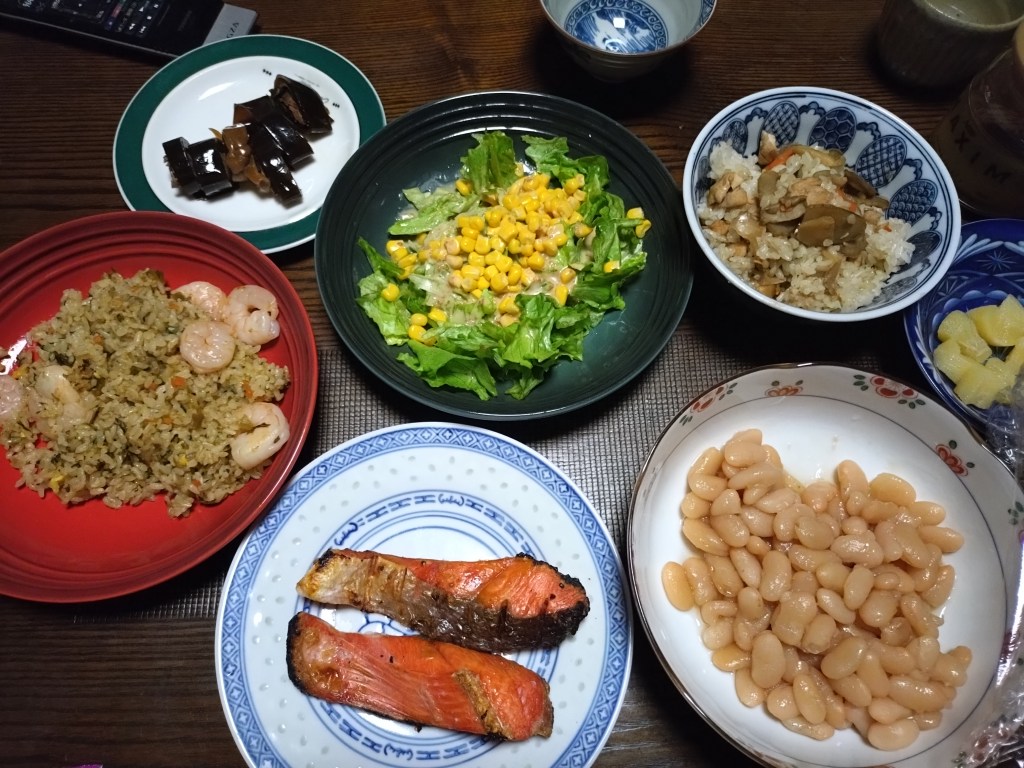 昨日の夕食は、父が作ったまぜご飯、王将の冷凍チャーハンでした。