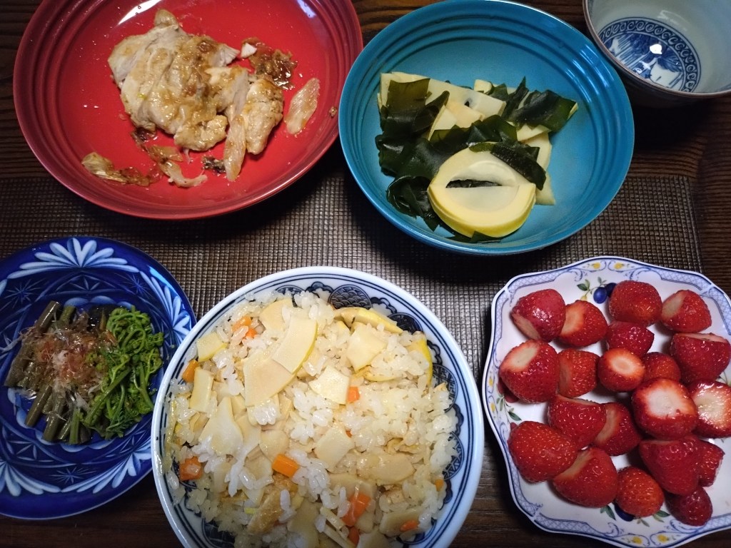 昨日の夕食は、一昨日に続いてタケノコづくしでした。