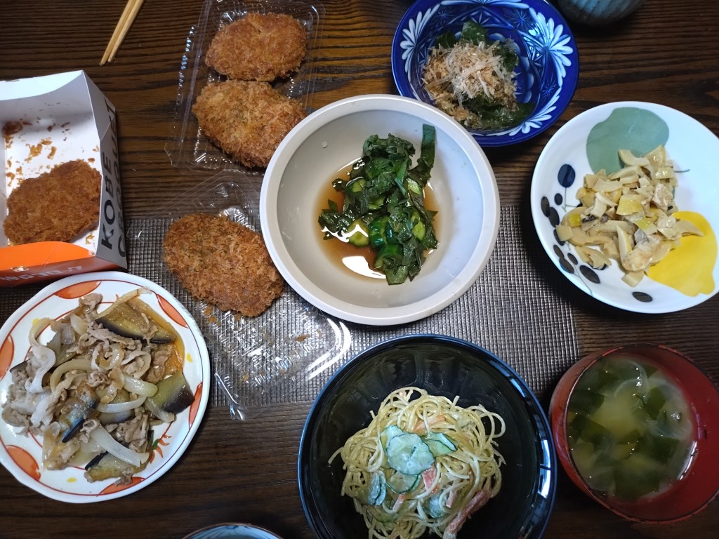 昨日の夕食のメインは、父が買ってきたコロッケととんかつでした。