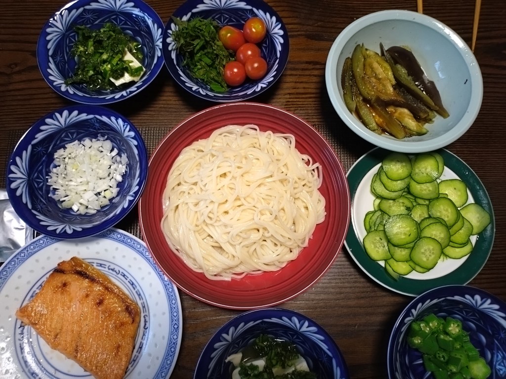 薬味として、我が家のオクラと大葉をたくさん使いました。